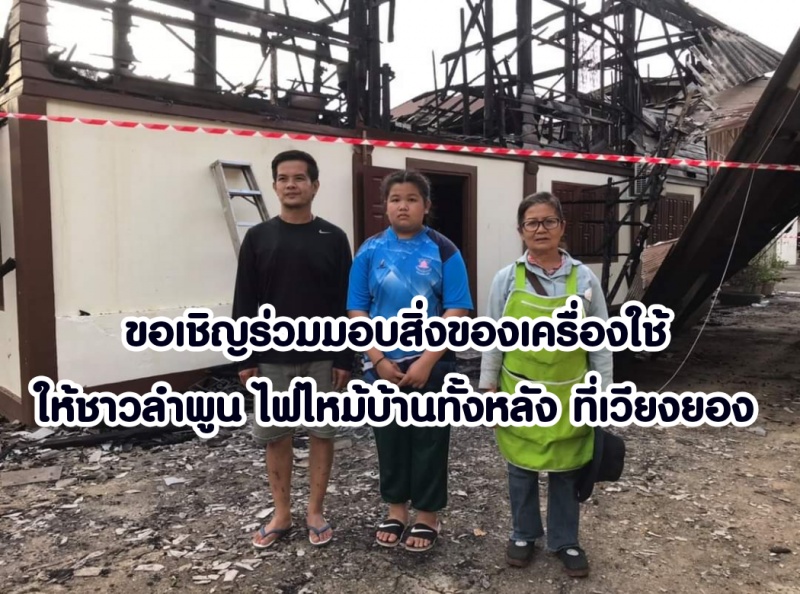 | • ขอเชิญร่วมมอบสิ่งของเครื่องใช้ ให้ชาวลำพูน ไฟไหม้บ้านทั้งหลัง ที่เวียงยอง |