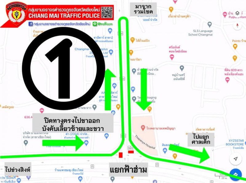 2. กรณีมาจากแยกรวมโชค จะไปแยกข่วงสิงห์ จะบังคับเลี้ยวซ้ายแยกฟ้าฮ่ามและไปกลับรถแยกศาลเด็ก