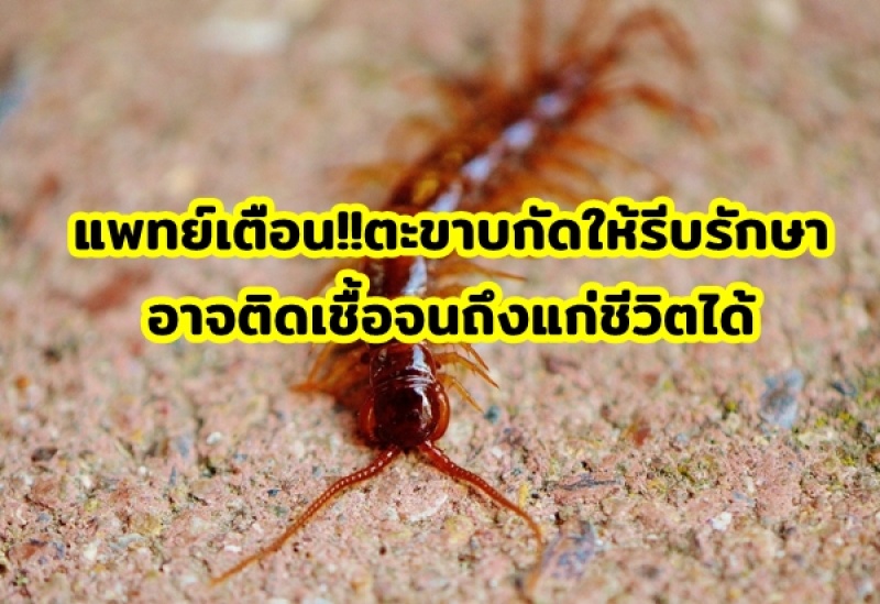 | • กรมการแพทย์เตือนตะขาบกัดให้รีบรักษา เพราะอาจติดเชื้อจนถึงแก่ชีวิตได้ |