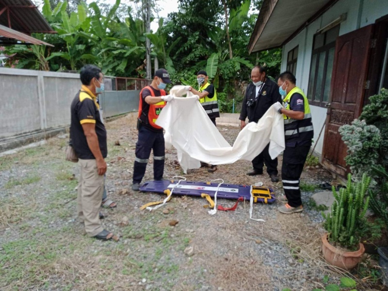 เบื้องต้นเมื่อ จนท.ไปถึงแล้วได้ตรวจสอบพบผู้เสียชีวิตเพศหญิงอายุ 64 ปี เสียชีวิต และมีเชือกผูกคอกับลูกกรงหน้าต่าง จึงแจ้งให้ทางตำรวจและแพทย์เวรรับทราบต่อไป