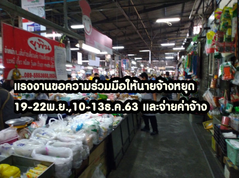 | • แรงงานขอให้นายจ้าง หยุด19-22พ.ย. และ10-13ธ.ค. และจ่ายเงินค่าจ้าง |