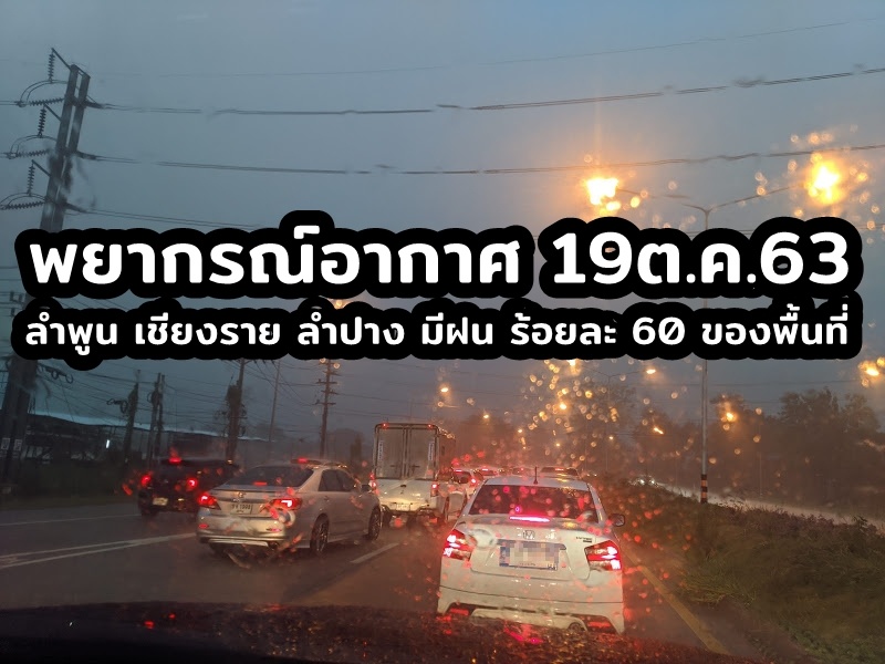| • พยากรณ์อากาศ 19ต.ค.63 ลำพูน เชียงราย ลำปาง มีฝน ร้อยละ 60 ของพื้นที่ |