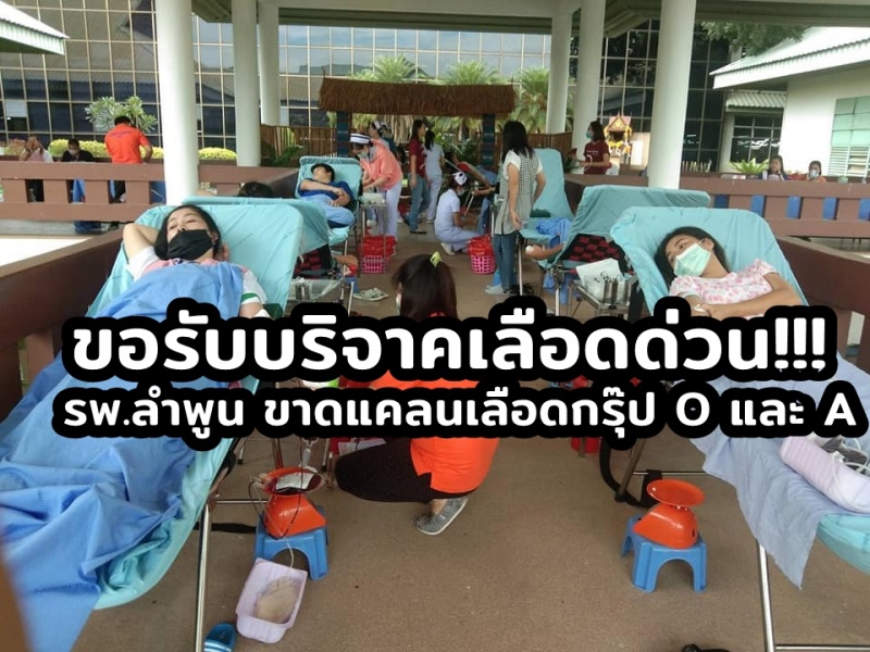 ณ วันที่ 19 ตุลาคม 2563 โรงพยาบาลลำพูน ประสบภาวะวิกฤติขาดแคลน โดยเฉพาะหมู่โลหิต O กับ A ซึ่งเหลือยู่เพียง 29 และ22ถึง ตามลำดับ