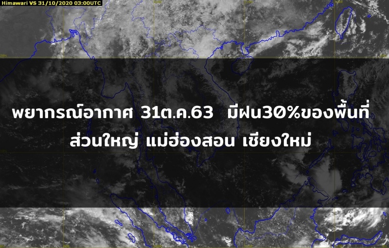 | • พยากรณ์อากาศ 31ต.ค.63 มีฝน 30%ของพื้นที่ ส่วนใหญ่ แม่ฮ่องสอน เชียงใหม่ |