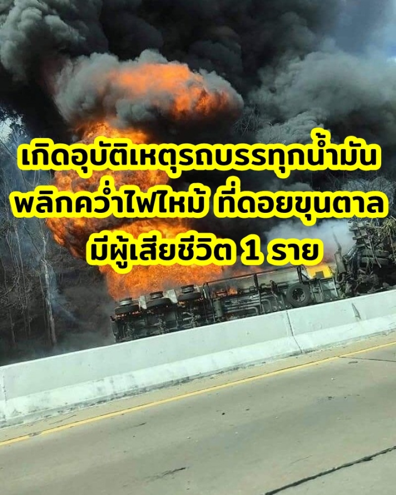 เกิดอุบัติเหตุรถบรรทุกน้ำมันพลิกคว่ำไฟไหม้ ที่ดอยขุนตาล มีผู้เสียชีวิต 1 ราย
