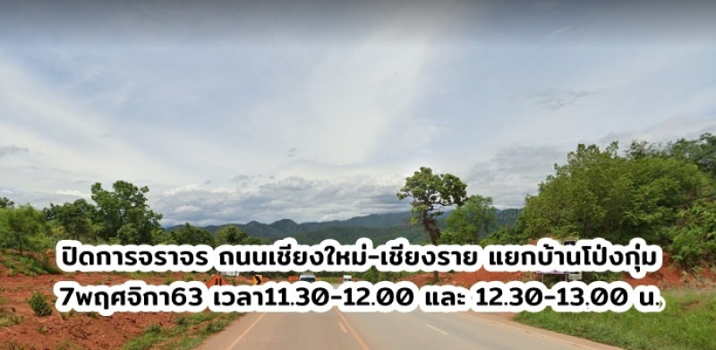 ปิดการจราจร ถนนเชียงใหม่-เชียงราย แยกบ้านโป่งกุ่ม 7พฤศจิกา63 เวลา11.30-12.00 และ 12.30-13.00 น.