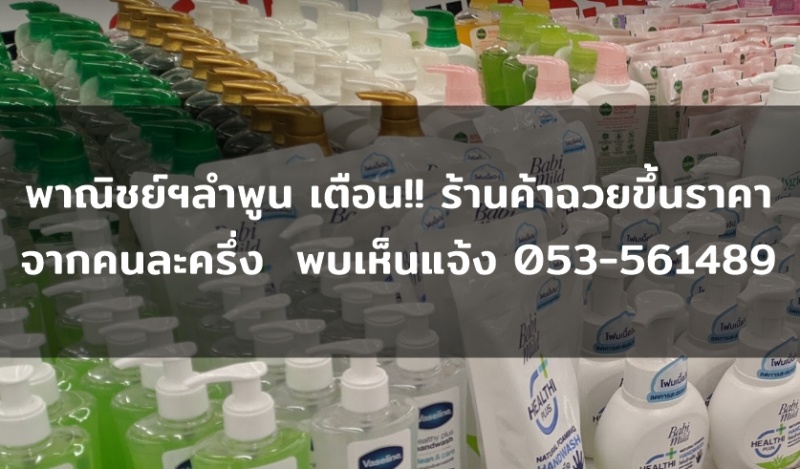 | • พาณิชย์ฯลำพูน เตือน!! ร้านค้าฉวยขึ้นราคา จากคนละครึ่ง พบเห็นแจ้ง 053-561489 |