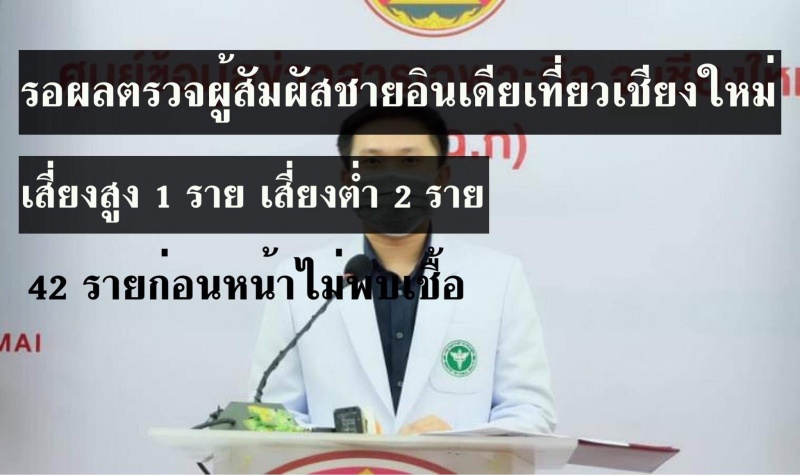 | • ลุ้นผลตรวจ ผู้สัมผัสชายอินเดีย เสี่ยงสูง1ต่ำ2 จากสถานบันเทิงในเชียงใหม่ |