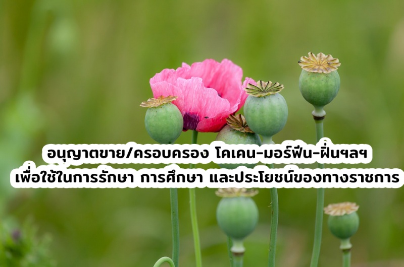 | • อนุญาตขาย/ครอบครอง โคเคน-มอร์ฟีน-ฝิ่น ฯลฯ เพื่อใช้ในการรักษา การศึกษา และประโยชน์ของทางราชการ |