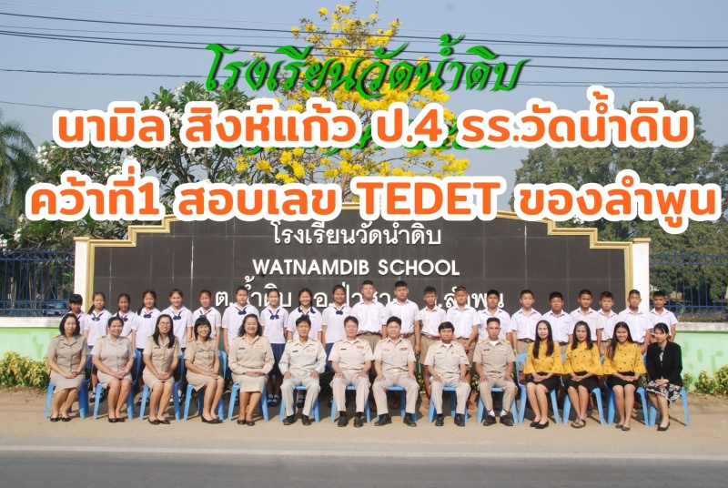 และ มีหนึ่งผล ที่ออกมา สร้างความ น่ายินดี คือ เด็กชายนามิล สิงห์แก้ว น.ชั้น ป.4 ของ โรงเรียนวัดน้ำดิบ ได้คะแนน วิชาคณิตศาสตร์ เป็นอันดับหนึ่งของจังหวัด ในระดับ ป.4