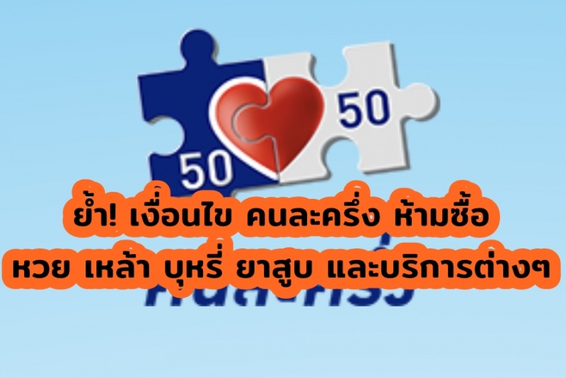 2. ห้ามนำเงินที่ได้จากคนละครึ่งไปซื้อสลากกินแบ่ง เครื่องดื่มแอลกอฮอล์ บุหรี่ ยาสูบ และบริการต่างๆ