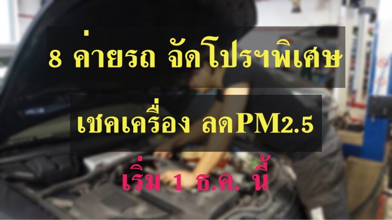 8 ค่ายรถใหญ่ขานรับ ร่วมลด PM 2.5 จัดโปรราคาพิเศษ บำรุงเครื่องรถยนต์ เริ่ม 1 ธันวาคมนี้ เป็นของขวัญปีใหม่