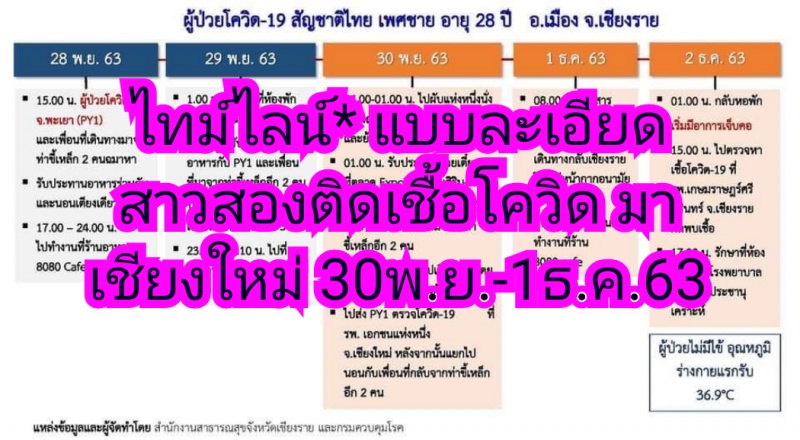 | • ไทม์ไลน์* แบบละเอียดสาวสองติดเชื้อโควิด มาเชียงใหม่ 30พ.ย.-1ธ.ค.63 |