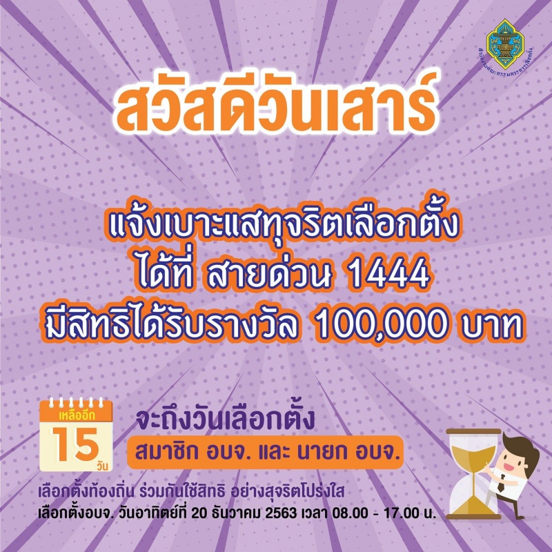 โทร.1444 แจ้งเบาะแส ทุจริตเลือกตั้ง อบจ. รับเงิน 1แสน บาท!!!