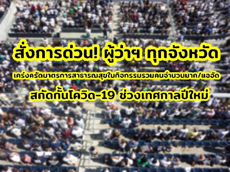 สั่งการด่วน! ผู้ว่าฯ ทุกจังหวัด ให้ความสำคัญมาตรการสาธารณสุขในกิจกรรมรวมคนจำนวนมาก/แออัด อย่างเคร่งครัด สกัดกั้นโควิด-19 พร้อมเพิ่มความถี่ตรวจตรามิให้กระทบธุรกิจและบรรยากาศช่วงเทศกาลคริสต์มาส-ปีใหม่ 64