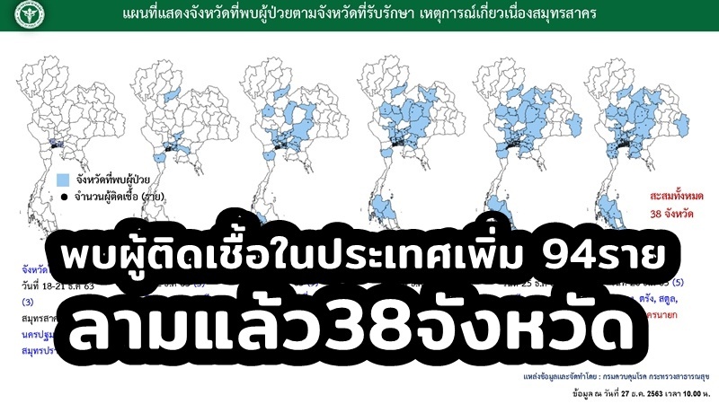 | • พบผู้ติดเชื้อในประเทศเพิ่ม 94ราย ลามแล้ว38จังหวัด |