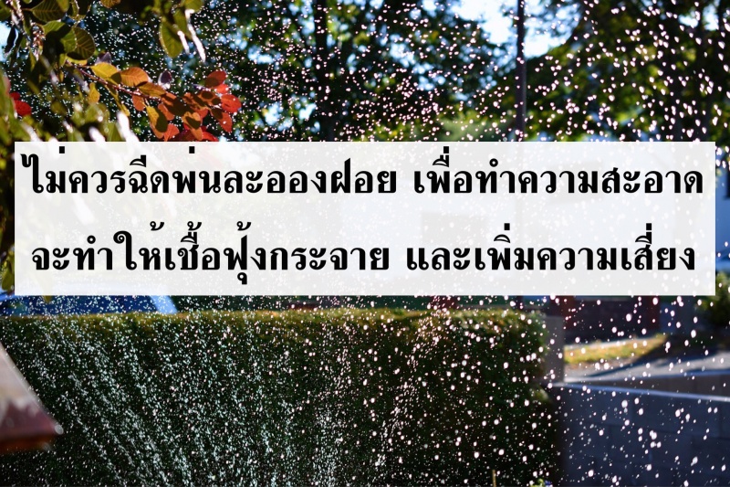 กรมควบคุมโรค กระทรวงสาธารณสุข แนะประชาชนไม่ควรฉีดพ่นละอองฝอย เพื่อทำความสะอาด จะทำให้เชื้อฟุ้งกระจาย เพิ่มความเสี่ยงในการติดเชื้อไวรัสโคโรนา 2019 (COVID-19) ขอให้ประชนทำความสะอาดพื้นผิวและของใช้ส่วนบุคคลที่อาจมีละอองของน้ำลาย เสมหะติดอยู่ โดยใช้วิธีเช็ดถูด้วยน้ำกับผงซักฟอก แล้วเช็ดด้วยน้ำสะอาด หรือใช้สารเคมีที่มีประสิทธิภาพ ดังนี้