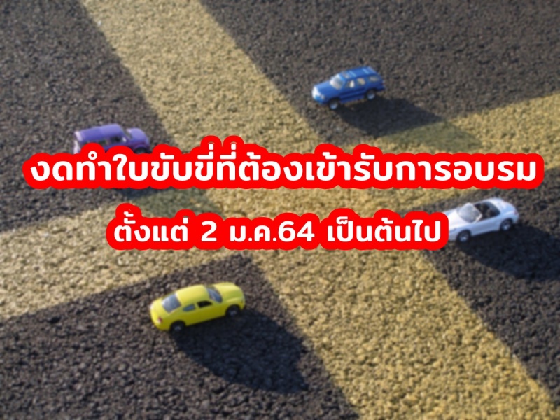 กรมการขนส่งทางบก งดการอบรมและทดสอบเพื่อขอรับใบอนุญาตขับรถและผู้ประจำรถรายใหม่ ณ สำนักงานขนส่งทุกแห่ง ตั้งแต่วันที่ 2 มกราคม 2564 เป็นต้นไป จนกว่าจะมีประกาศเปลี่ยนแปลง
