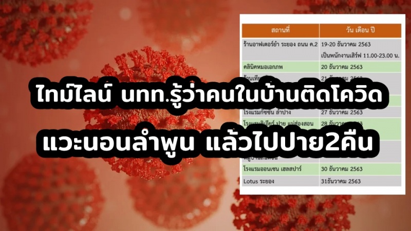 | • ไทม์ไลน์ นทท. รู้ว่าคนในบ้านติดโควิด นอนลำพูน แล้วไปปาย2คืน |