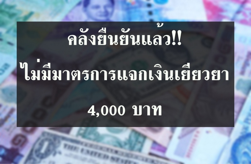 ยืนยันแล้ว!! ยังไม่มีมาตรการแจกเงินเยียวยา 4,000 บาท
