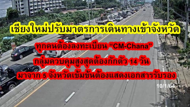 | • เชียงใหม่ปรับมาตรการควบคุมการเดินทางเข้าจังหวัด ทุกคนต้องลงทะเบียน CM-Chana กลุ่มควบคุมสูงสุดต้องกักตัว 14 วัน |