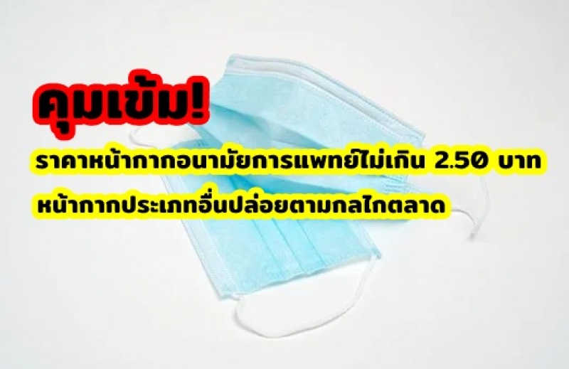 | • คุมเข้ม! ราคาหน้ากากอนามัยการแพทย์ไม่เกิน 2.50 บาท ส่วนหน้ากากประเภทอื่นปล่อยตามกลไกตลาด!! |