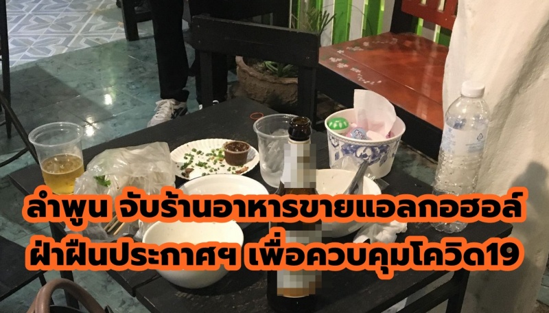 ชุดปฏิบัติการควบคุมโรคจังหวัดลำพูน จับร้านอาหารฝ่าฝืนคำสั่งคณะกรรมการควบคุมโรคฯ เปิดให้บริการจำหน่ายอาหาร และเครื่องดื่มแอลกอฮอล์
