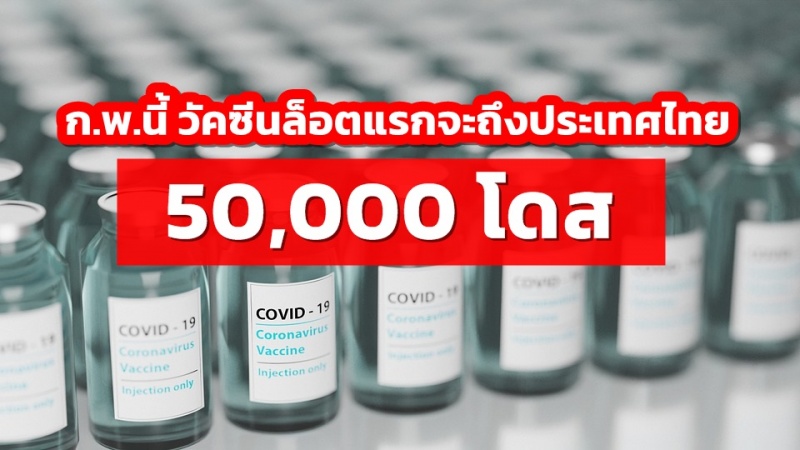 ในเดือน ก.พ.นี้ วัคซีนล็อตแรก 50,000 โดส จะถึงประเทศไทยและวัคซีนส่วนที่เหลือจะทยอยส่งมาอย่างต่อเนื่อง