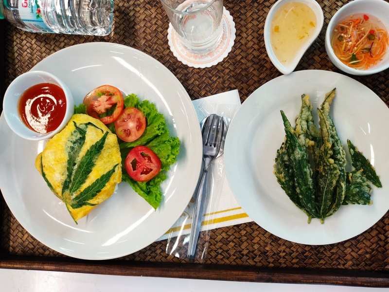 วันนี้ ศูนย์วิจัยและพัฒนาเกษตรธรรมชาติ มหาวิทยาลัยแม่โจ้ สาธิตเมนูตัวอย่างจากใบกัญชา ไข่เจียวกัญชา กัญชาทอดกรอบ และจะมีการเปิดตัวเมนูอื่นจากใบกัญชาเร็วๆนี้