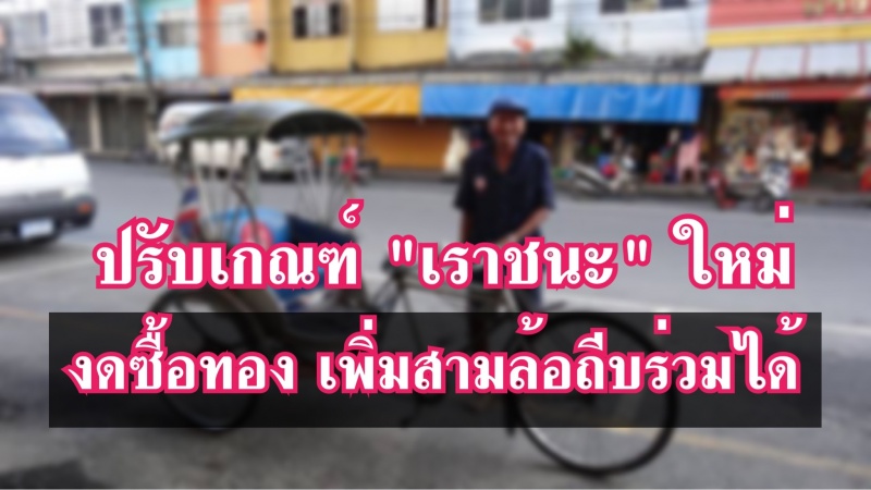 | • ปรับเกณฑ์ "เราชนะ" ใหม่ งดซื้อทอง เพิ่มสามล้อถีบร่วมได้ |