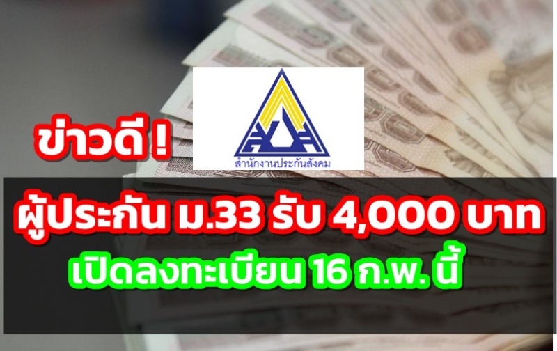 ผู้ประกัน ม.33 ลงทะเบียนรับ 4,000 บาท 16 ก.พ. นี้