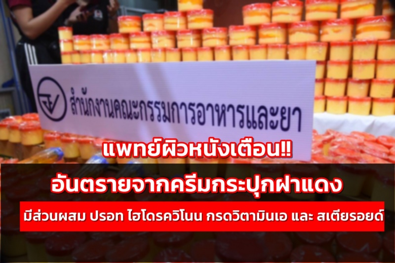 แพทย์ผิวหนังเตือนอันตรายจากครีมกระปุกฝาแดง มีส่วนผสม ปรอท ไฮโดรควิโนน กรดวิตามินเอ และ สเตียรอยด์