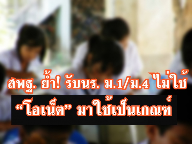 "เพื่อให้เกิดความเป็นธรรมและความเสมอภาคแก่นักเรียนทุกคน จึงแก้ไขเพิ่มเติมแนวปฏิบัติการรับนักเรียนชั้น ม.1 และ ม.4 โดยไม่นำผลคะแนนการทดสอบโอเน็ต มาใช้ในการรับนักเรียนเข้าศึกษา" เลขาธิการ กพฐ.