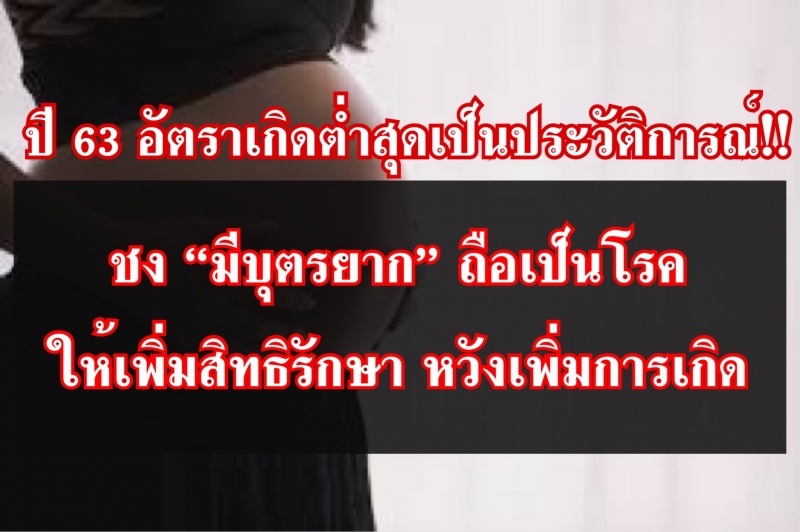 | • หมอสูติฯชง มีบุตรยาก ถือเป็นโรค ให้เพิ่มสิทธิรักษา หวังเพิ่มการเกิด หลังปี 63 อัตราเกิดต่ำสุดเป็นประวัติการณ์!! |