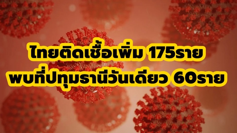 ไทยติดเชื้อเพิ่ม 175ราย ,พบที่ปทุมธานีวันเดียว 60ราย