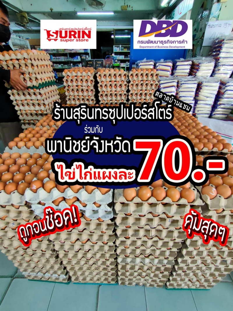 กรมการค้าภายใน กระทรวงพาณิชย์ และสำนักงานพาณิชย์จังหวัดลำพูน จัดจำหน่ายไข่ไก่ธงฟ้า ขนาดเบอร์ M "ลดราคา ช่วยประชาชน" จากฟาร์มผู้เลี้ยงไข่ไก่ แผงละ 30 ฟอง ในราคา 70 บาท เพื่อลดค่าครองชีพประชาชน  ตั้งแต่วันที่ 10-14กุมภาพันธ์ 64