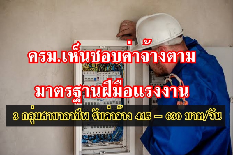 | • ครม.เห็นชอบค่าจ้างตามมาตรฐานฝีมือแรงงาน 3 กลุ่มสาขาอาชีพ รับค่าจ้าง 415 630 บาทต่อวัน |