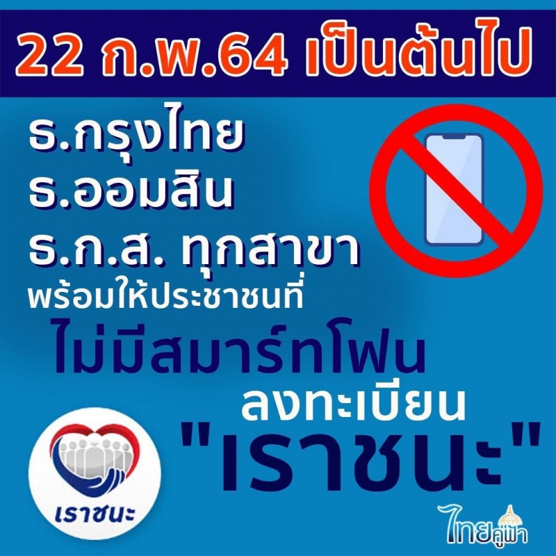 22 ก.พ. เพิ่ม 3 แบงค์รัฐ รับลงทะเบียน “เราชนะ”