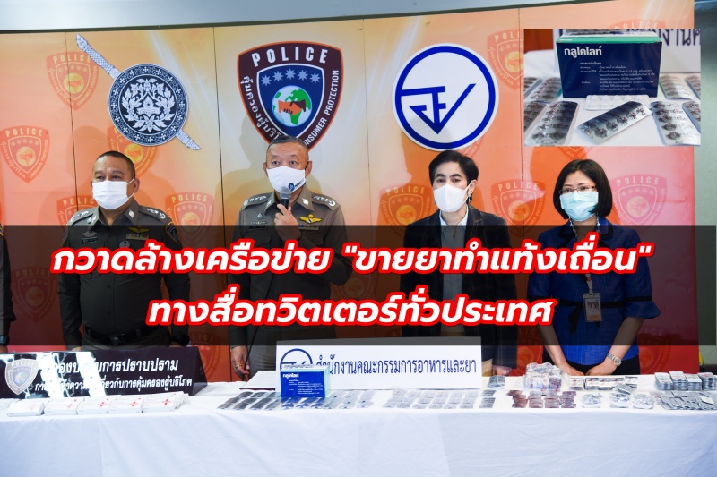 ปิตะบุตร รอง ผบก.ป., พ.ต.อ.ปทักข์ ขวัญนา ผกก.4 บก.ป.,และ ภญ. สุภัทรา บุญเสริม รองเลขาธิการคณะกรรมการอาหารและยา ร่วมกันแถลงผลการทลายเครือข่ายลักลอบขายยาทำแท้งเถื่อนทางสื่อทวิตเตอร์รายใหญ่ ดังนี้