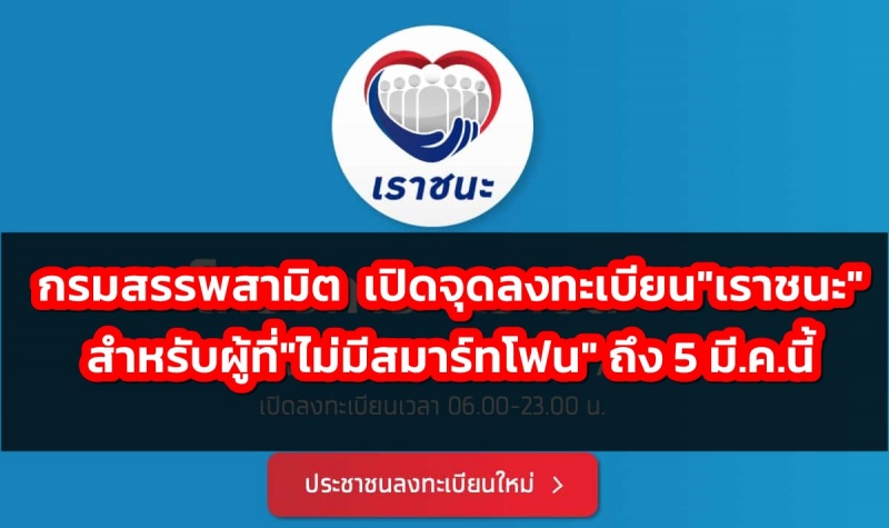 กรมสรรพสามิต เปิดจุดบริการลงทะเบียน"เราชนะ" สำหรับผู้ที่"ไม่มีสมาร์ทโฟน" ถึง 5 มี.ค.นี้