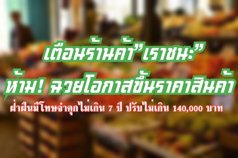 | • พาณิชย์เตือนผู้ประกอบการเข้าร่วมโครงการเราชนะ ห้ามฉวยโอกาสขึ้นราคาสินค้า พบกระทำผิดมีโทษทั้งจำทั้งปรับ |