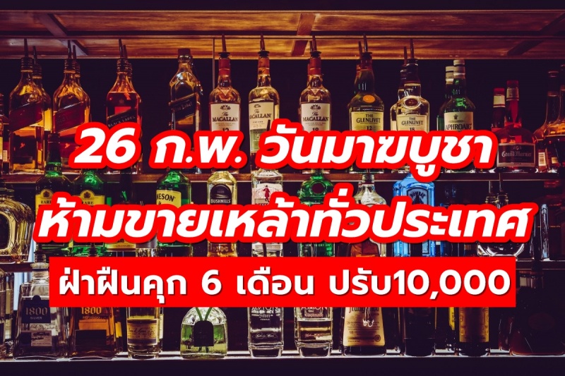 วันมาฆบูชาห้ามขายเหล้าทั่วประเทศ ฝ่าฝืนคุก 6 เดือน ปรับ10,000