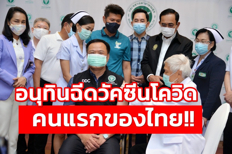 นายอนุทิน ชาญวีรกุล รองนายกรัฐมนตรีและรัฐมนตรีว่าการกระทรวงสาธารณสุข เป็นผู้รับวัคซีนคนแรกของไทย ฉีดโดย ศ. นพ.ยง ภู่วรวรรณ