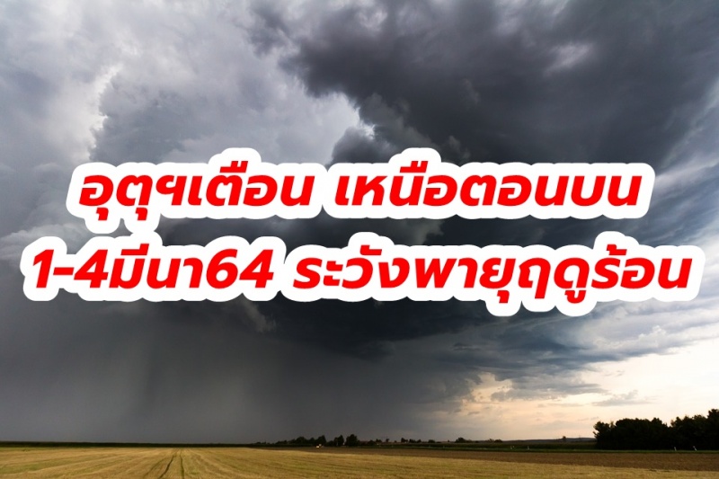 ในช่วงวันที่ 1 - 4 มีนาคม 2564 ประเทศไทยตอนบนจะมีพายุฤดูร้อนเกิดขึ้น โดยมีลักษณะของพายุฝนฟ้าคะนอง