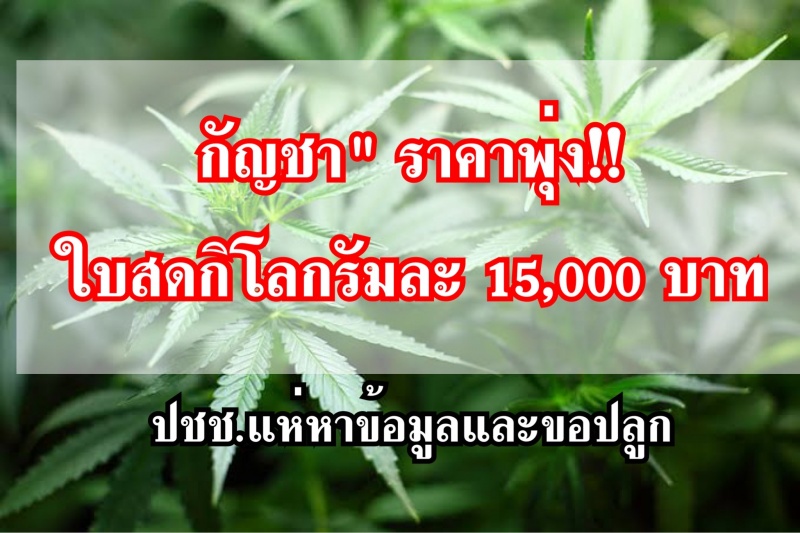 | • กัญชา" ราคาพุ่ง เผยกัญชาใบสดกิโลกรัมละ 15,000 บาท ปชช.แห่หาข้อมูลและขอปลูก |