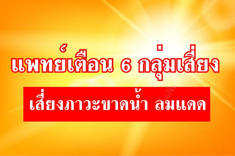 | • แพทย์เตือน 6 กลุ่มเสี่ยง เสี่ยงภาวะขาดน้ำ ลมแดด |
