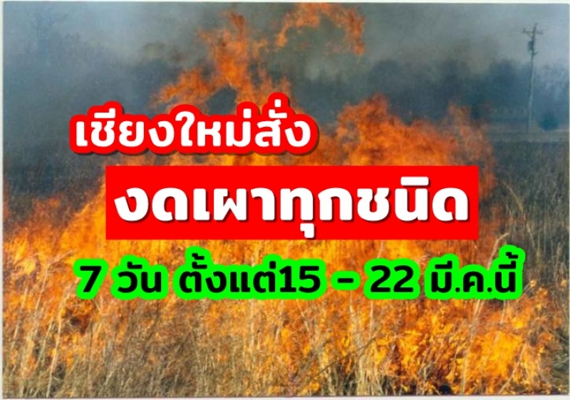| • เชียงใหม่ สั่งงดเผาทุกชนิด 7 วัน!!! 15 - 22 มี.ค.นี้ พร้อมงัดกฎหมายออกมาใช้จับกุมผู้ลักลอบเผา |