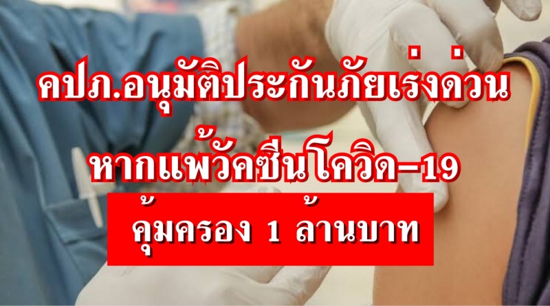 คปภ.อนุมัติประกันภัยเร่งด่วน หากแพ้วัคซีนโควิดคุ้มครอง 1ล้าน