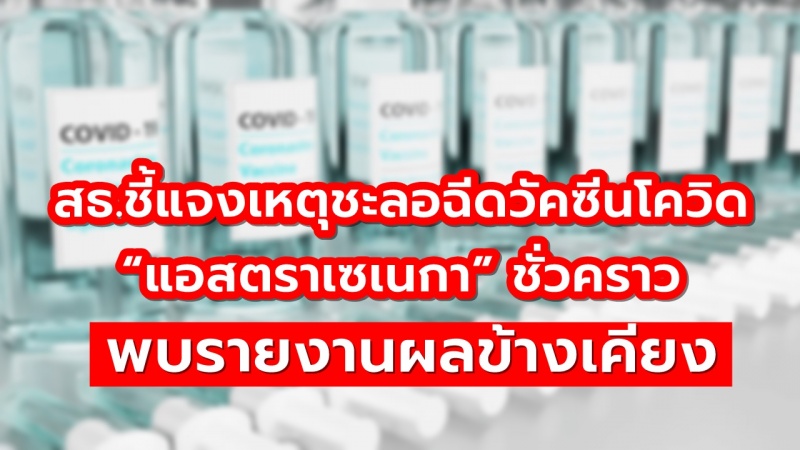 สธ.ชี้แจงเหตุชะลอฉีดวัคซีนโควิดของ“แอสตราเซเนกา” ชั่วคราว จนกว่าจะมีผลการสืบค้นที่ชันเจน ย้ำทุกฝ่ายต้องการให้ประชาชนได้รับวัคซีนที่ปลอดภัยเท่านั้น!!