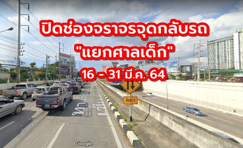 "ปิดช่องจราจรของจุดกลับรถบริเวณแยกศาลเด็ก"ทิศทางด้านที่มาจากแยกหนองประทีป 16- 31 มีนาคม 2564